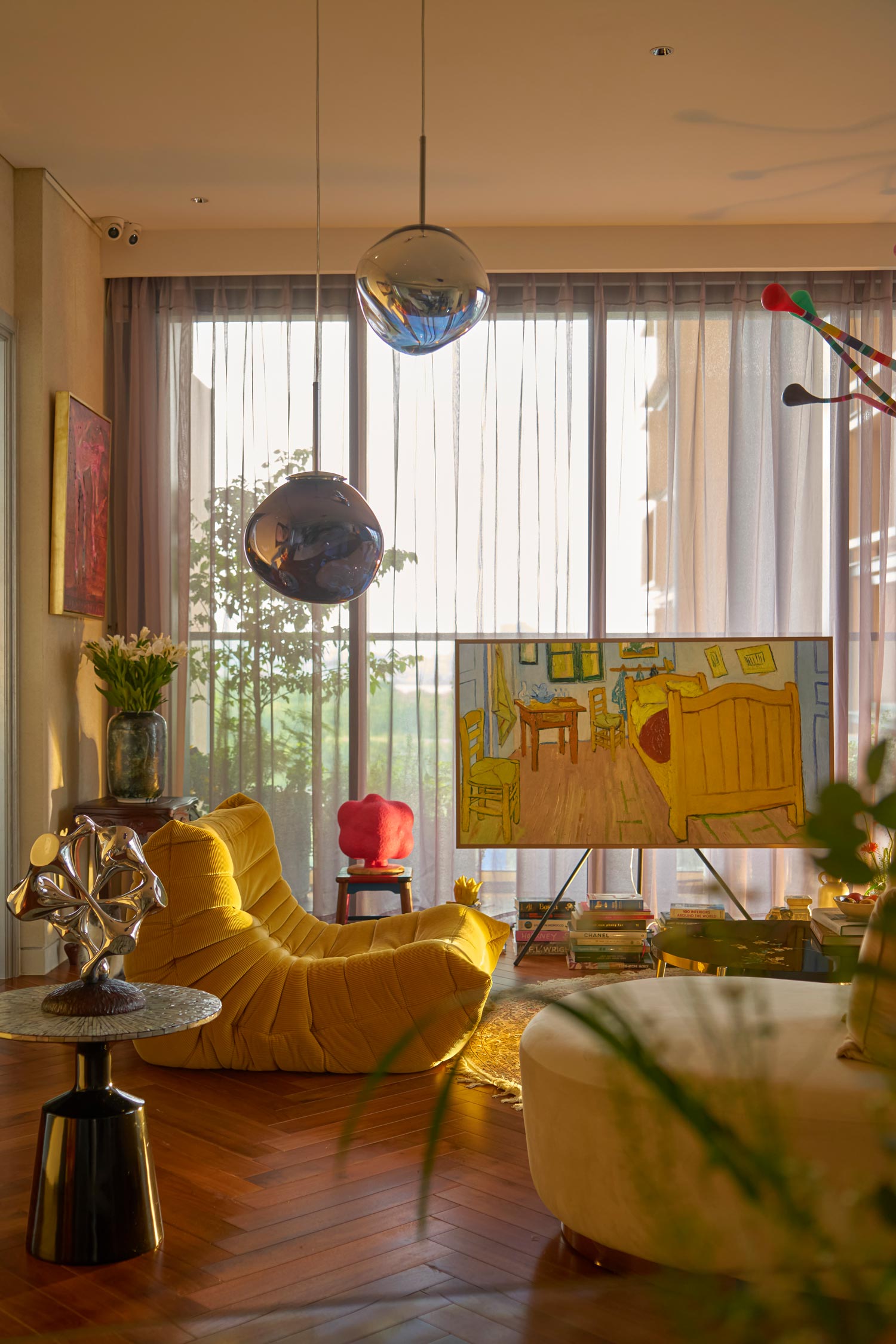 Từng nghệ phẩm đa chất liệu được cẩn trọng sắp đặt, định thành một tổ ấm nhà ở mang phong cách khác biệt, đậm dấu ấn sưu tầm.